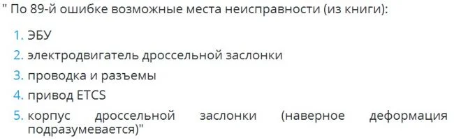 Вроде все работает, заводится отлично, но через пару секунд глохнет сама. Также выдает ошибку 89, по книге дроссельная заслонка.