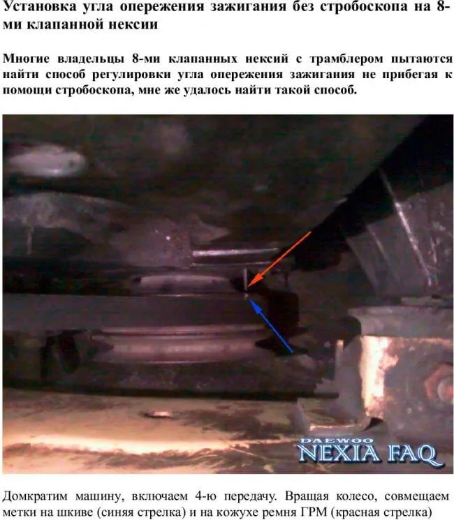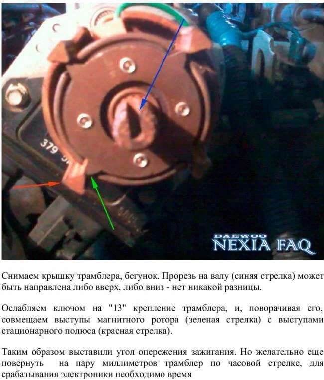 На Дэу Нексия снят трамблер! Как правильно поставить и выставить зажигание?