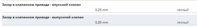 Зазор клапанов указан ниже, взято по ссылке.