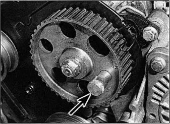 Вообще для фиксации по меткам существует спец. инструмент. В большинстве случаев можно обойтись подручными средствами. Распредвал ставится по метке так, крышку клапанную надо снять сзади и на торце вала распил. Вот этот распил параллельно плоскости поверхности головы. Там фиксируется пластиной. Смотрите не установите на 180 градусов. Кулачки четвертого цилиндра должны смотреть вниз, как на фото.