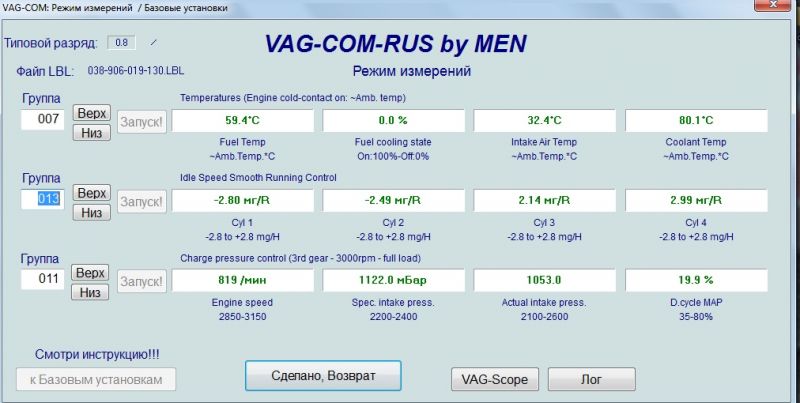 Понятно. Сделайте тогда диагностику с помощью программы вагком и предоставьте данные как на прикрепленном фото. Обратите внимание, данные нужно считывать когда двигатель прогрет до рабочей температуры.