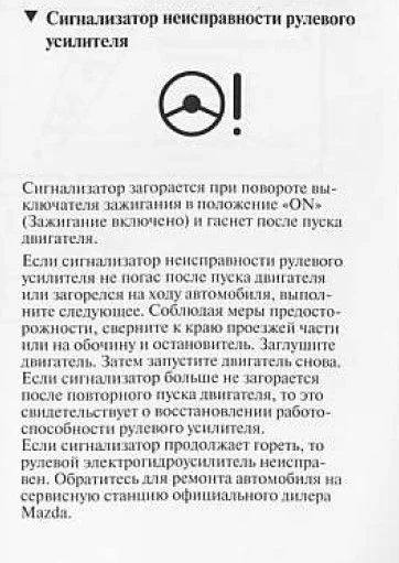Желтый чек в виде руля и восклицательного знака Мазда Аксела 2