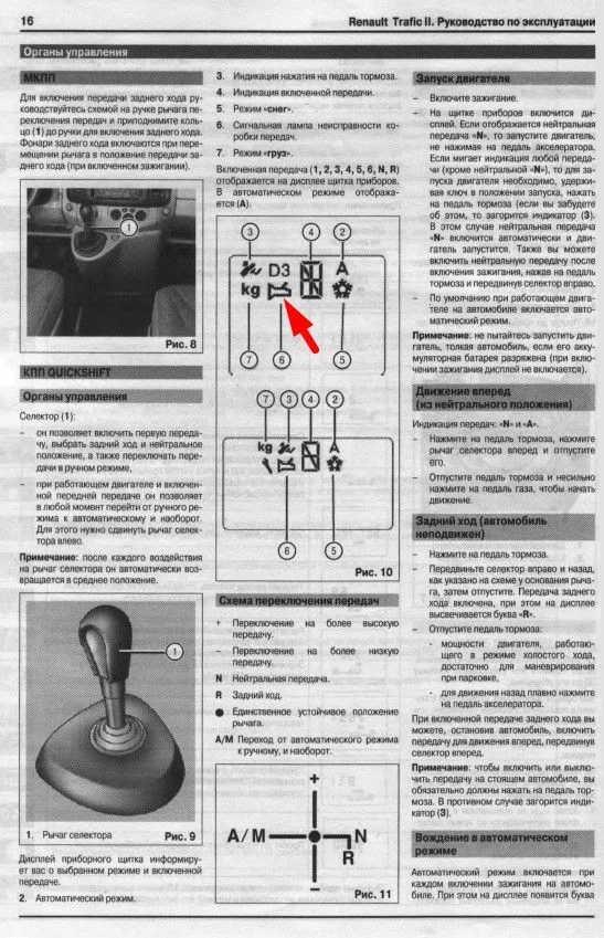 Что значит значок рычаг коробки передач в Рено Трафик 2?