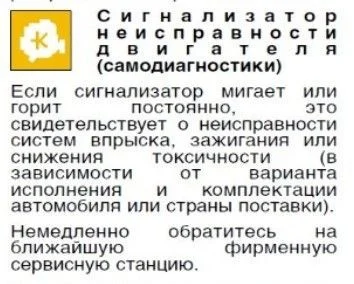 Подскажите пожалуйста, при включенном двигателе спустя некоторое время загорается красным цветом значок на приборной панели в виде двигателя с буквой К в середине. Может исчезнуть, а потом опять загореться. Спасибо.