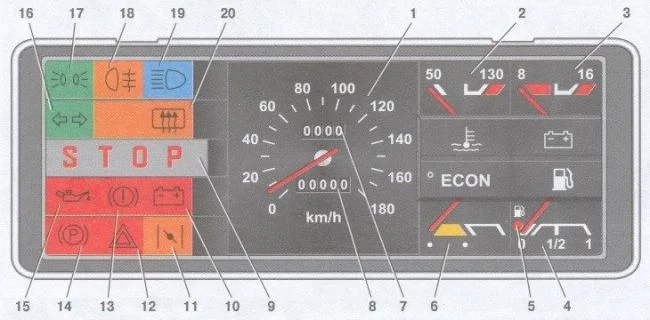 11) «Косая черта» — сигнализирует о прикрытии воздушной заслонки;