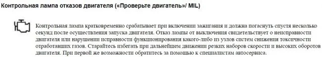 Значок должен загораться при включении зажигания и гаснуть через несколько секунд после запуска двигателя. Если все исправно работает, то это нормально. Если есть неисправность, то нужно провести диагностику сканером, считать ошибки и провести по ним проверки. Часто встречающиеся причины описаны по ссылке.
