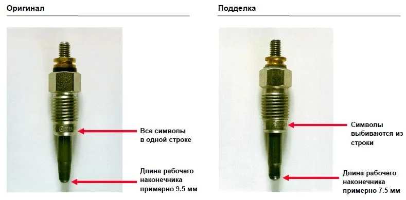 В настоящее время на полках автомагазинов можно нередко встретить поддельные свечи накала. В основном их производят на территории Китая и Российской Федерации. Естественно, что качество у таких изделий намного хуже, чем у оригинальных. И, соответственно, они не только будут эксплуатироваться меньшее количество времени, но и не будут соответствовать заявленным характеристикам. Более того, они могут нанести прямой вред двигателю автомобиля. Поэтому при выборе тех или иных свечей накаливания необходимо применять нехитрые методы, позволяющие свести к минимуму вероятность покупки фальсификата.
