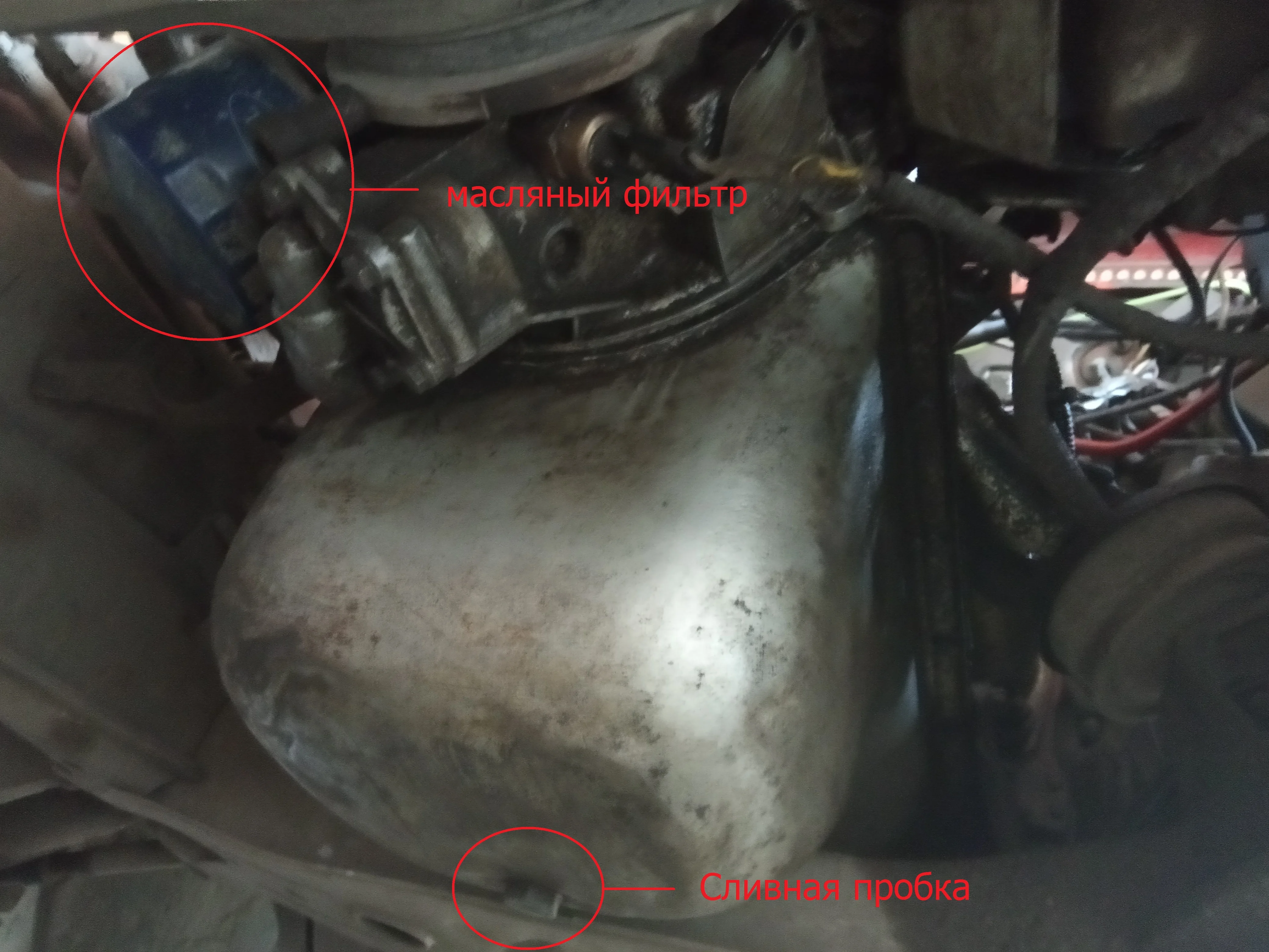 Далее поддомкрачиваем автомобиль и начинаем замену. Сливная пробка 19 мм находится на задней части масляного поддона, используйте ключ и открутите ее. Здесь же вы сможете увидеть масляный фильтр, он расположен на передней части двигателя слева, под гидроусилителем.