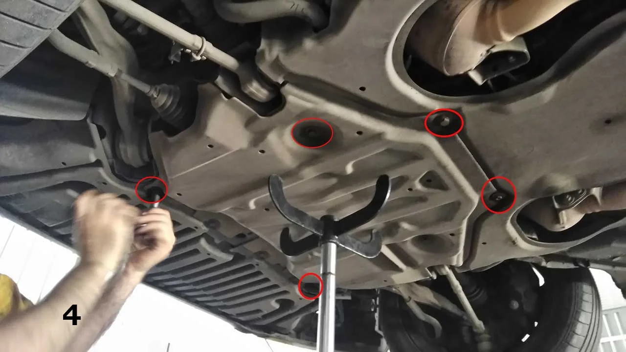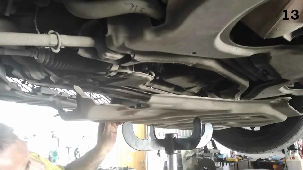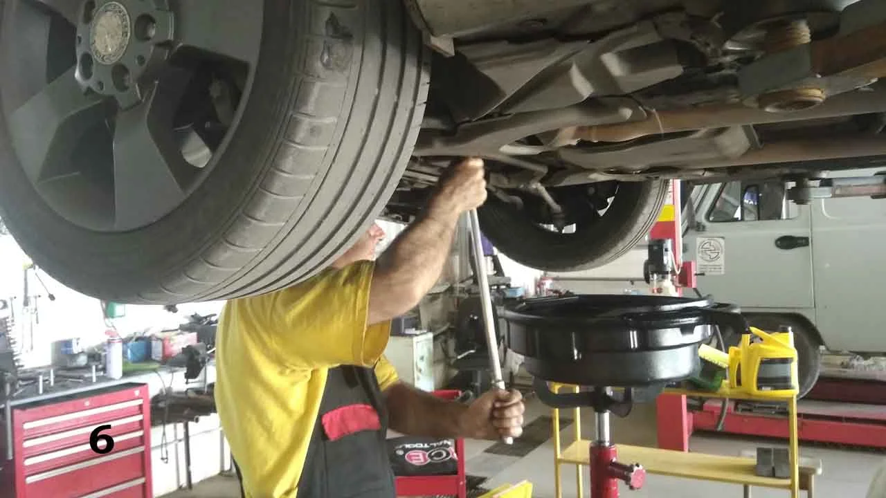 - Первым шагом замены, нужен доступ к сливу старому маслу. Машину лучше поставить на подъемник.