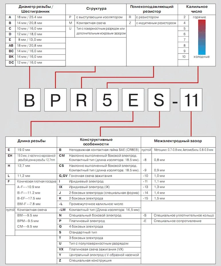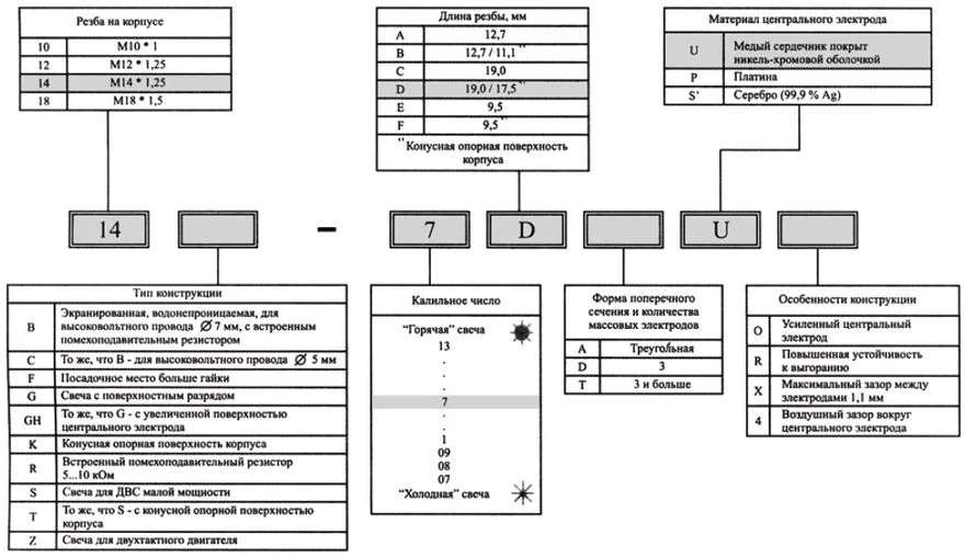 Маркировка свечей зажигания