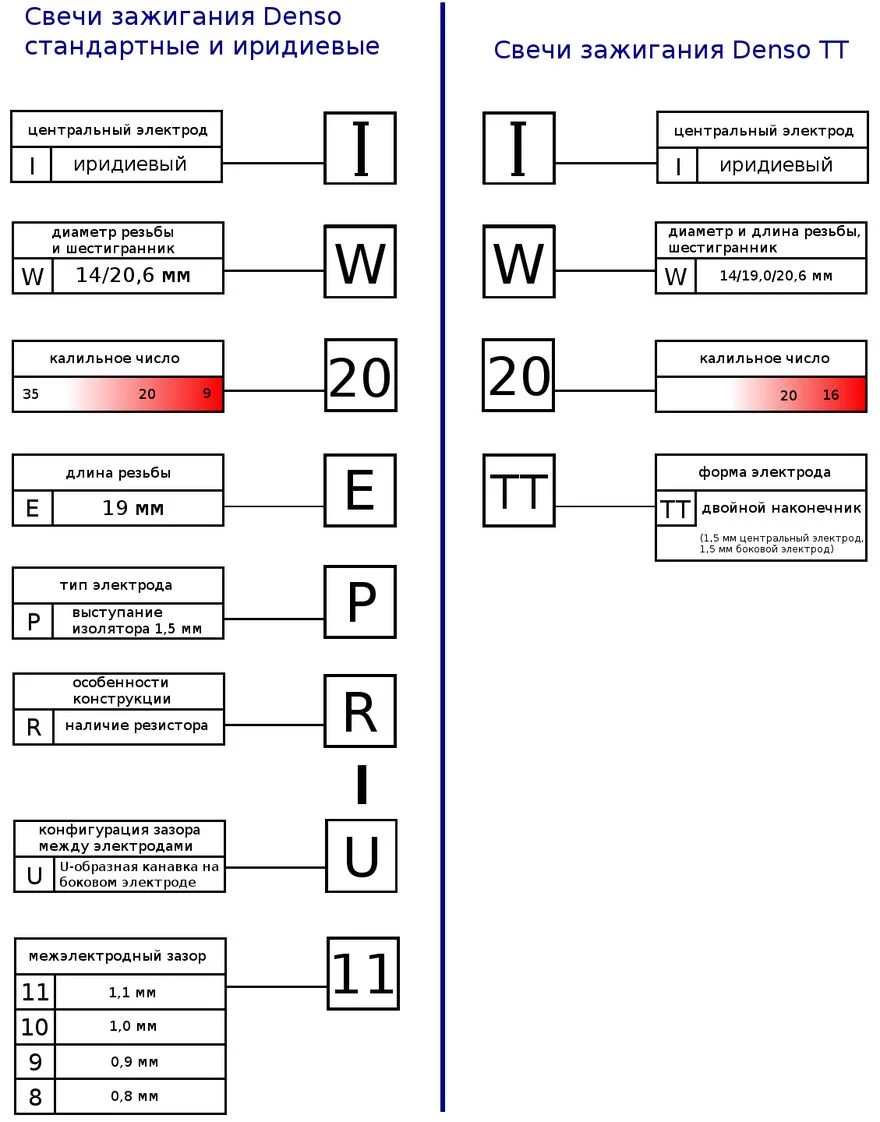 Маркировка свечей зажигания для РФ