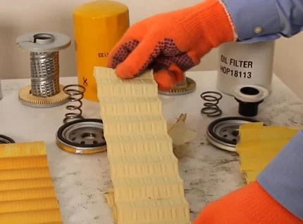 В фильтрах Mann, Mahle, SCT и MARSHALL Укладывается материал уложен по принципу “правильной гармошки”.