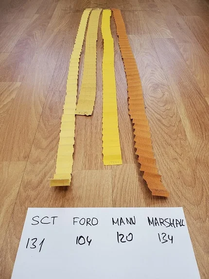 Катушка фильтров MARSHALL и MAHLE выполнена практически идентично: форма корпуса одинакова, качество фиксации высокое, никаких следов клея на внешней стороне гармошки не видно. Бумага уложена равномерно, размеры совпадают, отличается лишь цвет бумаги. В фильтре MARSHALL используется бумага, производства Hollingsworth & Vose (США).