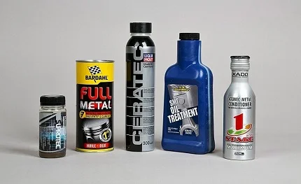 Реметаллизанты – это присадки в ДВС с металлоплакирующими компонентами, их еще называют “реметаллы”. Состав представляет собой металл в виде мелкодисперсного порошка “мягких” металлов – меди, олова, свинца и др. Благодаря такой форме во время работы двигателя он налипает на те участки деталей, на которых есть царапины. Добавка способна улучшить работу силовой установки и отсрочить капитальный ремонт. Правда такой мелкодисперсный металл довольно мягкий и поэтому восстановленный слой держится на деталях сильно изношенного двигателя не дольше 5000 км пробега.