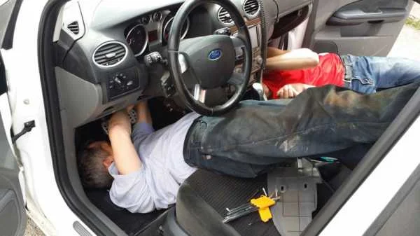 - отодвиньте блок педали, не трогая колодку с проводами;