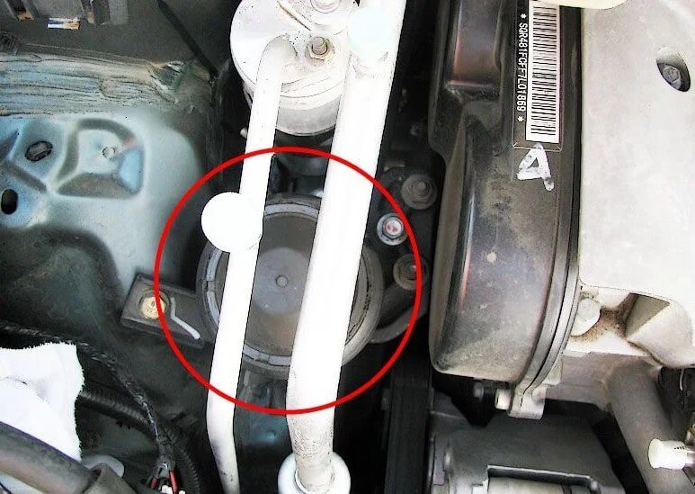 Расширительный бачок снимается, из него вытаскивается трубка. При замене помпы, слить охлаждающую жидкость.