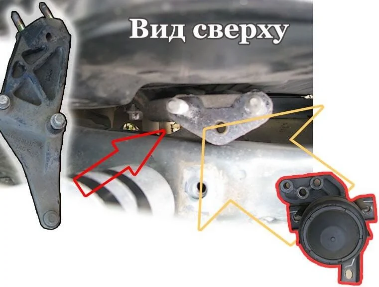 Двигатель тоже нужно поддомкратить, чтобы после того, как снимется опора, он остался на месте.
