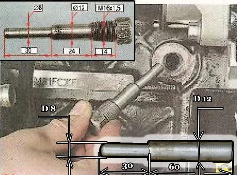 Есть еще один способ регулировки, положение коленвала можно регулировать, пользуясь четырьмя одинаковыми стержнями, для этого их нужно опустить в свечные колодцы. Как только коленвал встанет правильно, стержни встанут ровно.