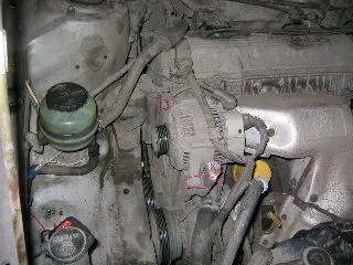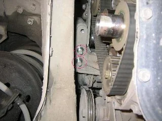 А далее приступим можно сказать к самой ответственной и сложной процедуре, нужно будет открутить болт шкива коленвала. В самом шкиве есть четыре маленьких отверстия, они предназначены для специального инструмента, их диаметр очень мал, поэтому приспособиться использовать не его достаточно сложно и на первый взгляд невозможно. Можно зажать его тисками, и пользуясь ломом зафиксировать его. Теперь откручиваем болт. Все, тяжелая работа закончилась сейчас нужно снять ремень кондиционера и генератора, что бы сделать это, нужно ослабить стопорный и осевые болты генератора.