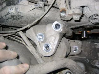 Все, теперь отсоединяем черный провод, который идет от мотора к опоре. Не забудьте поставить домкрат под правую часть двигателя, можно продолжать. Приступаем демонтировать правую опору, которая мешает съемке защитных кожухов.