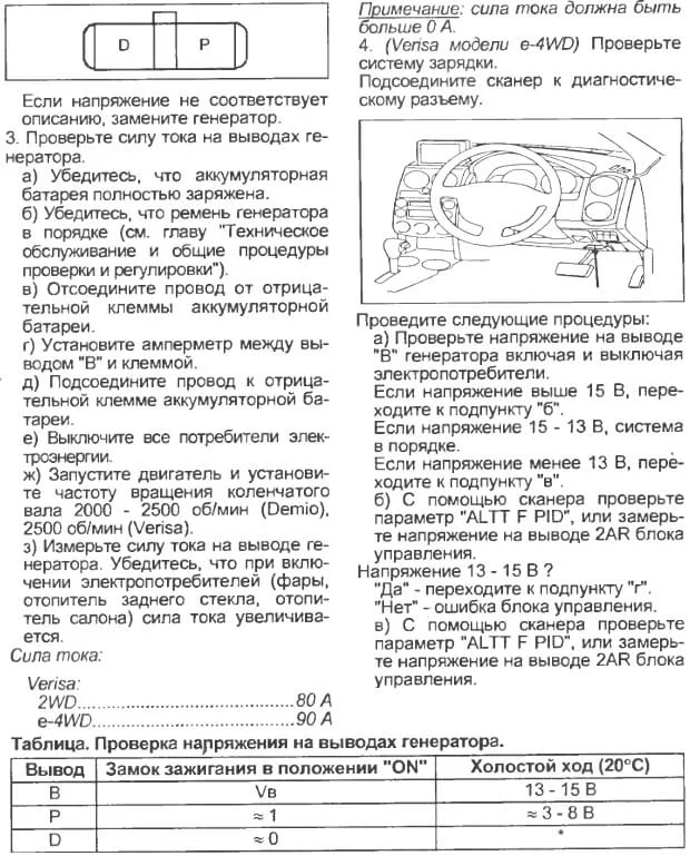 Если нет желания обращаться в автосервис, то следует подготовить измерительные приборы и слесарные инструменты, а также позаботиться о знании алгоритма проверки и замены генератора. Получить эту информацию можно из инструкции от производителя Mazda Verisa, представленной далее: