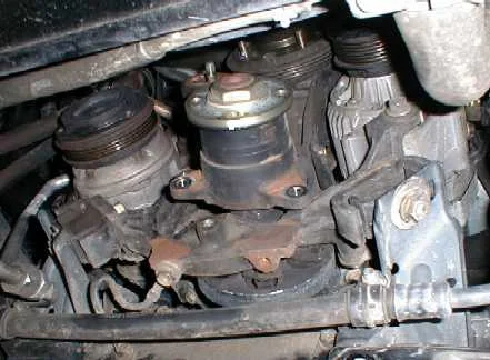 после снимается водяная помпа, не забывайте, что если Вы не снимете термостат, то и водяную помпу снять вряд ли получится.