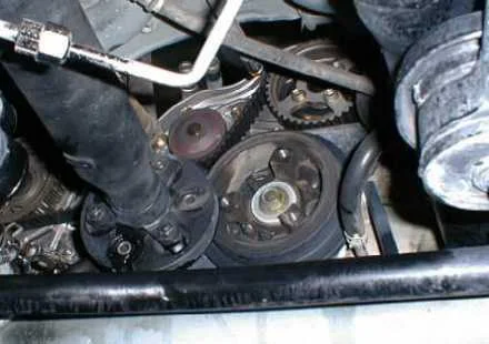 аккуратно меняем положение шкива вентилятора, ну все, теперь можно снять ремень ГРМ,