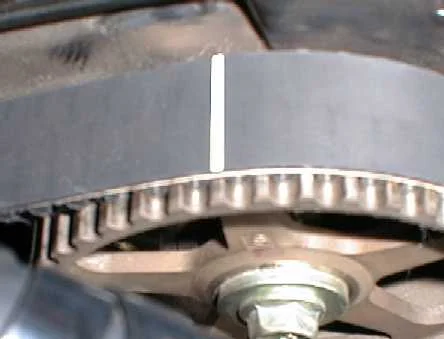 Когда будите натягивать ремень нужно следить, чтобы не создать перегибов, не сбить зубцы из пазов и не повредить его.