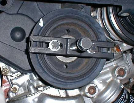 Для того, чтобы произвести снятие чехла ремня ГРМ нужно будет потрудиться, поскольку Вам будет очень тесно. Как только чехол снят можно приступать к раскручиванию ведущего шкива.