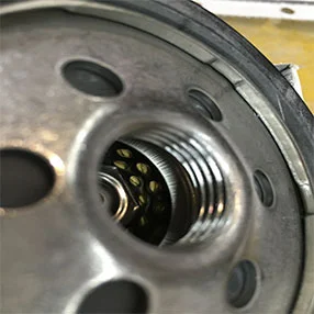 - Способ укладки фильтрующей бумаги. В оригинале это сделано в форме фирменной “Елочки” (увидеть способ укладки фильтрующей бумаги можно через монтажное отверстие рис. 3) Подделка же имеет стандартную укладку фильтрующего элемента в виде гармошки, и визуально намного тоньше.