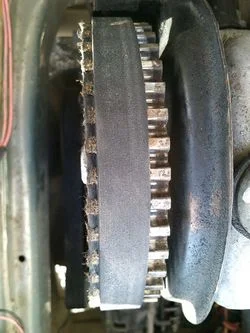 - Некачественный ремень. Если на двух краях ремня разная жесткость, то будет возникать ситуация, когда ролик ГРМ жрет ремень с более мягкой стороны. Проверить это можно путем замены его правой и левой стороны. Если после замены вторая сторона не будет изнашиваться, значит, виноват именно ремень. Выход тут один, и заключается он в покупке и установки новой, более качественной, детали.
