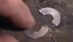 Другой метод заключается в самостоятельном изготовлении шайб в виде полумесяца. Количество и ширину шайб также подбирают опытным путем. Использование таких шайб более целесообразно, поскольку с их помощью можно изменить угол наклона шпильки и ролика с тем, чтобы он образовывал нормаль по отношению к плоскости корпуса блока цилиндров.