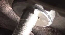 - Изгиб шпильки ролика. Механически исправить шпильку практически нереально. Иногда (но не во всех случаях, и зависит это от степени кривизны шпильки и места ее искривления) можно попробовать вывернуть шпильку и ввернуть ее обратно, но другой стороной. Если искривление небольшое, то такое решение может увенчаться успехом. Однако в большинстве случаев пользуются регулировочными шайбами. Рассмотрим этот пункт отдельно, поскольку большинство автолюбителей считает этот метод настоящей панацеей в случае, если съедает ремень ГРМ со стороны двигателя или с противоположной стороны.