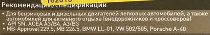 - API SN/CF (однако на американские допуски в данном случае можно не смотреть, поскольку по их классификации не существует малозольных масел, а только «среднезольные» — Middle SAPS);