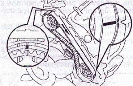 Внимание, обязательно проследите за расположением меток! Если не совпадут, то всю операцию снятия ремня и его переустановки придется повторить. После того как установите ремень, и он будет натянут, метки должны совпадать, даже если сделать шесть оборотов коленвала. Запускать мотор можно только тогда, когда все вышеописанные условия будут выполнены.
