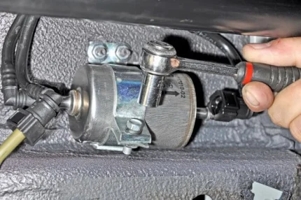 Для сбрасывания давления в системе перед заменой фильтра изначально нужно отсоединить провода питания от топливного модуля, в котором находится насос, и также запустить двигатель для выработки остатков топлива.