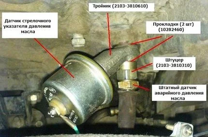 Так, автолюбители устанавливают в месте подключения датчика давления так называемый тройник, на один выходной конец которого подключается традиционный электронный датчик, а на другой — механический. Шланг с проводами монтируется в подкапотном пространстве в соответствии с конструкцией двигателя. Главное, чтобы он не мешал другим элементам мотора, и сам не подвергался механическому и значительному тепловому воздействию. На его конце устанавливают манометр, например, от ВАЗ «классики», УАЗ или другой подобный прибор. На самом деле его модель не важна, главное, чтобы было удобно ориентироваться по шкале, то есть, она должна иметь подробную градуировку.