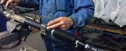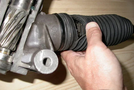 - Если рейка идет в сборе с тягами, также проверяем соединяющий их с валом рейки шарнир на люфт и осматриваем пыльник (при наличии) на предмет разрывов. Если есть возможность, снимаем пыльник и осматриваем также состояние вала под ним – на нем не должно быть следов коррозии и грязи.