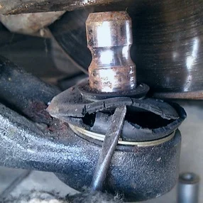 Заменить поврежденный пыльник шаровой легко. Для этого нужно отсоединить шаровую опору от ступицы, а затем поддеть отверткой стопорное кольцо. Как только это будет сделано, пыльник можно стянуть с опоры. Перед установкой нового пыльника следует тщательно промыть открытые поверхности и предварительно смазать их.
