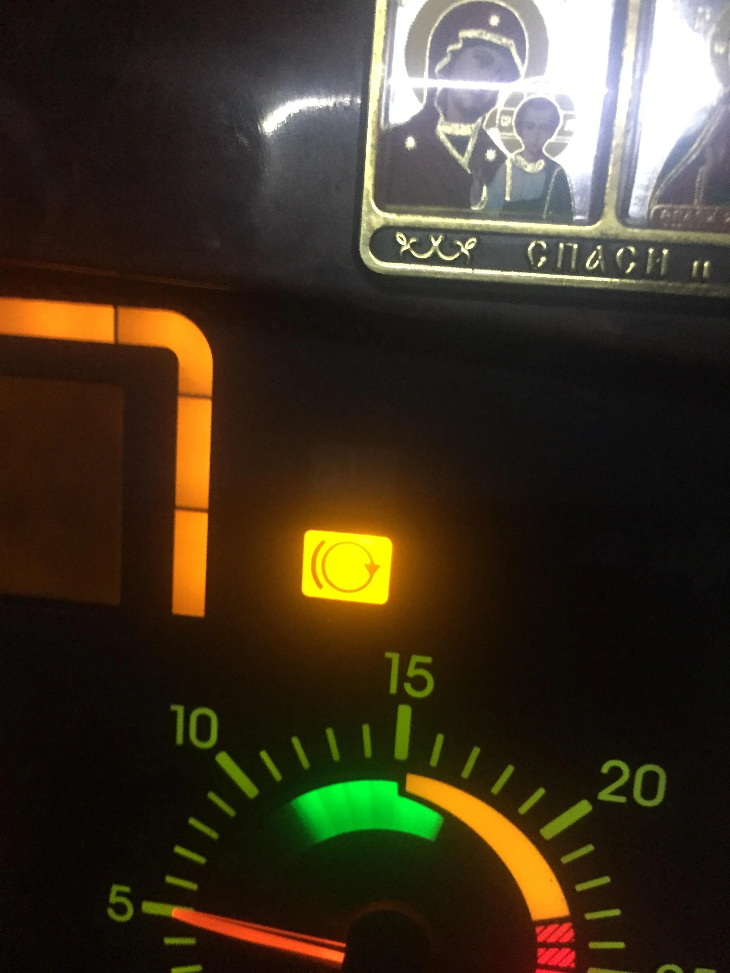 подскажите значение значка изображение двигателя с пламенем справой сторони на сетра215?