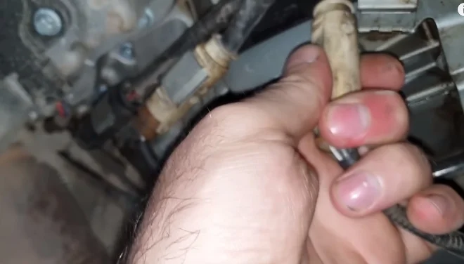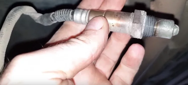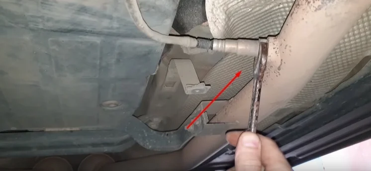 - С помощью ключа на двадцать два выкручиваем датчик с выхлопной трубы.