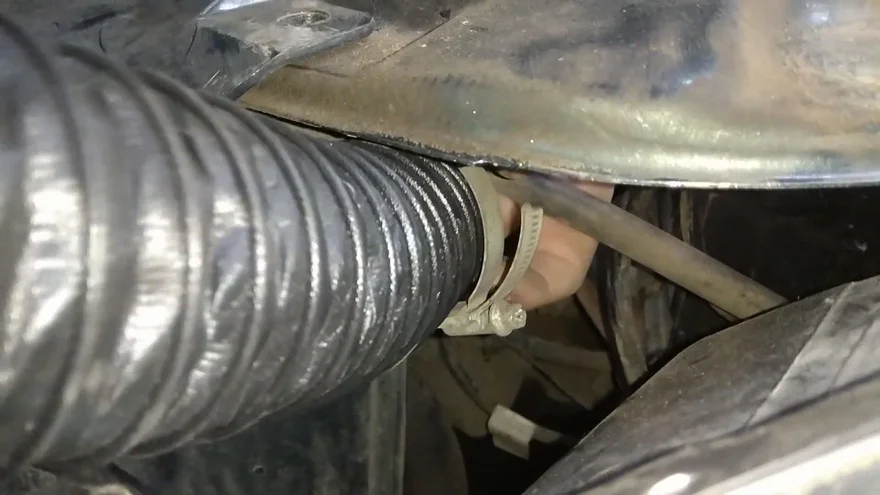 Прикручиваем патрубок к корпусу и затягиваем хомут.