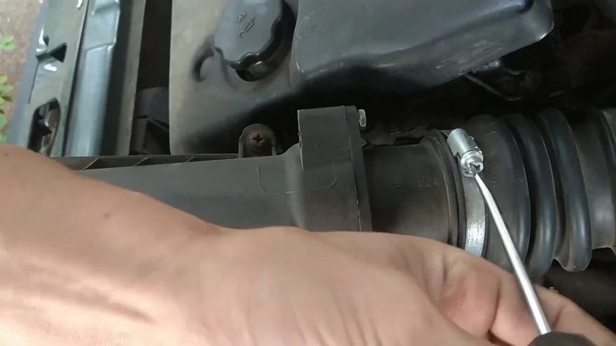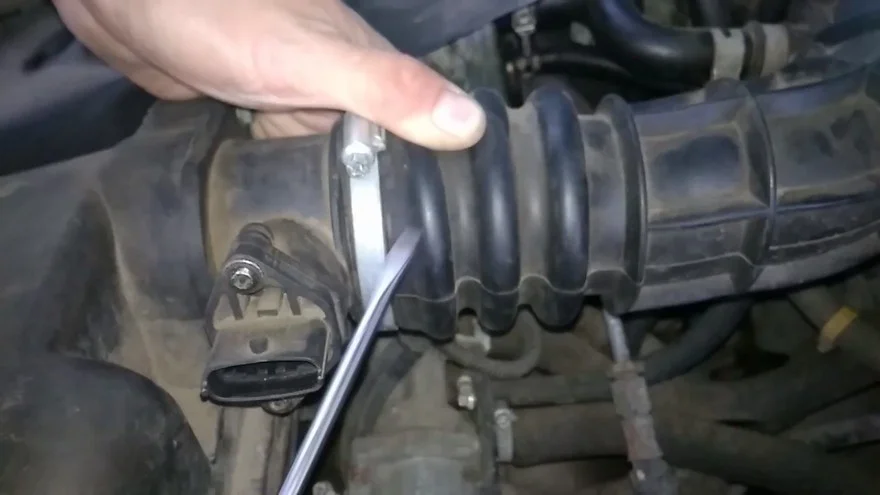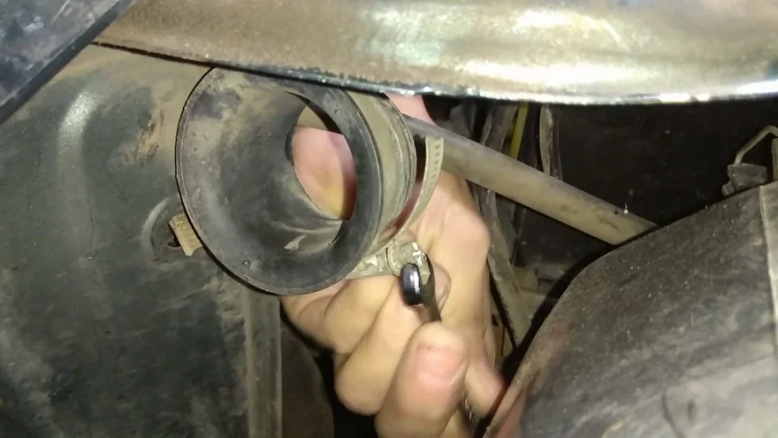 Откручиваем хомут крепления патрубка к корпусу, убираем корпус в сторону.