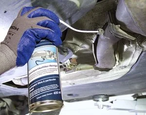 При положительных показаниях к принудительной очистки используя специальное средство можно применять два его вида — присадку к топливу, которая попросту поднимает температуру внутри катализатора, тем самым способствует естественному сгоранию сажи. Либо применить пенный очиститель катализатора, который вводится с помощью трубочки через отверстия кислородного датчика и растворяет сажу.