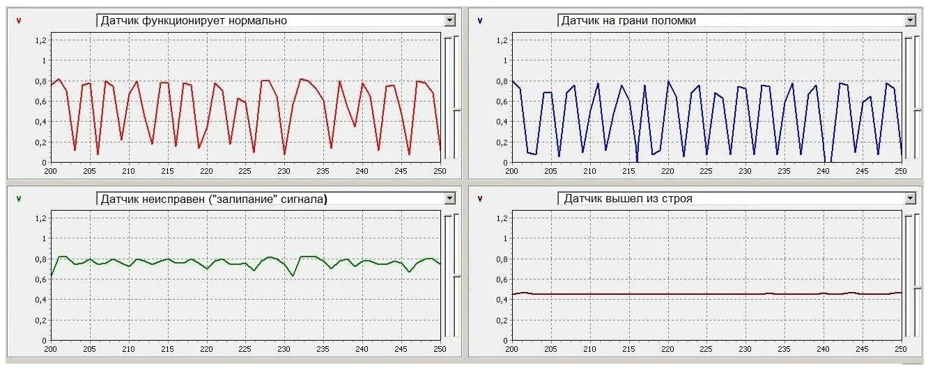 Как можно увидеть, все виды проблем с датчиком кислорода проявляются в виде одинаковых симптомов. Это связано с тем, что если лямбда передает ЭБУ неверные данные о составе смеси – «мозги» начинают неправильно дозировать топливо и регулировать момент зажигания. Если сигнала с сенсора вообще нет – ЭБУ переводит двигатель в аварийный режим работы с «усредненными» параметрами.