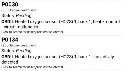 Отображение одновременно двух ошибок: P0030 и P0134