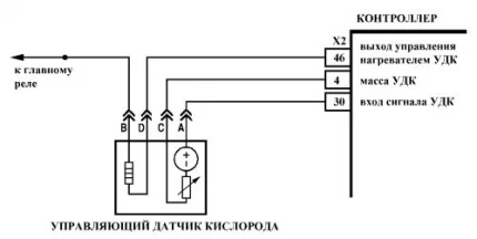Если рабочая часть УДК не нагрелась до 300 градусов по Цельсию датчик не активен — уровень сигнала нулевой. В холодном состоянии сопротивление чувствительного элемента УДК несколько МОм. При повышении температуры сопротивление уменьшается и уровень сигнала входит в определенный диапазон. Внутри УДК имеется специальный нагревательный элемент. К нему подводится питание, управляемое ЭСУД, с использованием в цепи реле. Таким образом имеем на колодке цепь контроллера, реле и контакты непосредственно датчика.