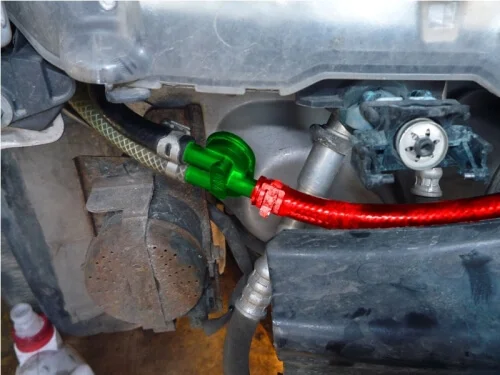 На тройник устанавливаем заглушку чтобы омывающая жидкость не вытекла из бачка. Или можно слить омывающую жидкость в подготовленную тару, а после завершения работ, залить ее обратно.