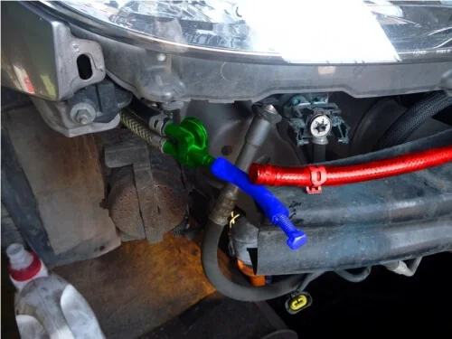 Теперь нужно разъединить магистраль омывателя фар.