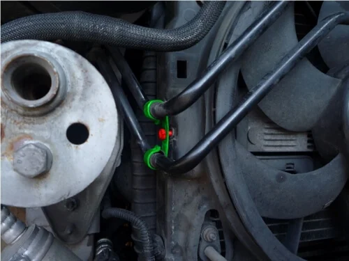 Как только вентиляторы отцеплены от сети, можно приступить к снятию трубки охлаждения жидкости ГУР, а затем можно приступить к демонтажу телевизора.